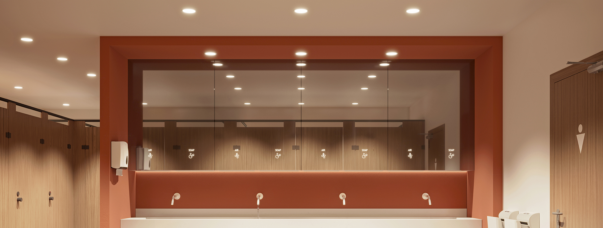 ALORA превращают свет в инструмент для управления настроением: плавная смена цветовой температуры от уютного 3000 K до энергичного 5700 K помогает спокойно переключаться с отдыха на работу и наоборот. Благодаря защите IP54 светильники устойчивы к попаданию влаги и пыли внутрь корпуса, поэтому могут применяться как в жилых интерьерах, так и в зонах с повышенной влажностью, например в ванных комнатах, санузлах и других.