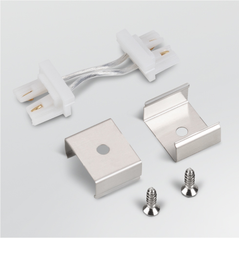 Светодиодная лента FC M200 уже установлена в алюминиевом профиле. В комплекте есть все необходимое для быстрого подключения — заглушки с выводом питания, глухие заглушки и держатели. Не требуются пайка, специальные инструменты или сложная сборка.