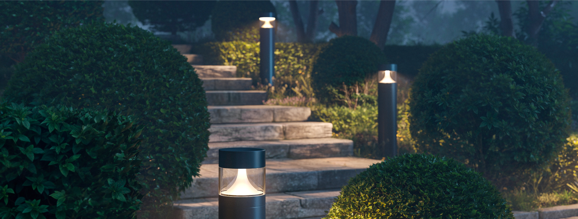 Стильные светильники подчеркивают красоту ландшафта в темное время суток и превращают участок в настоящее произведение искусства. Благодаря широкому углу излучения в 300° и направленному вниз свечению LANDMARK не слепит глаза, создает комфортное освещение для пешеходных дорожек или придомовых территорий, а также организует яркую подсветку ландшафтных элементов.