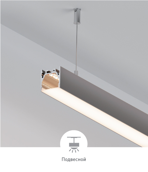 Серия профилей с шириной световой линии 23,5 мм и различными вариантам монтажа.