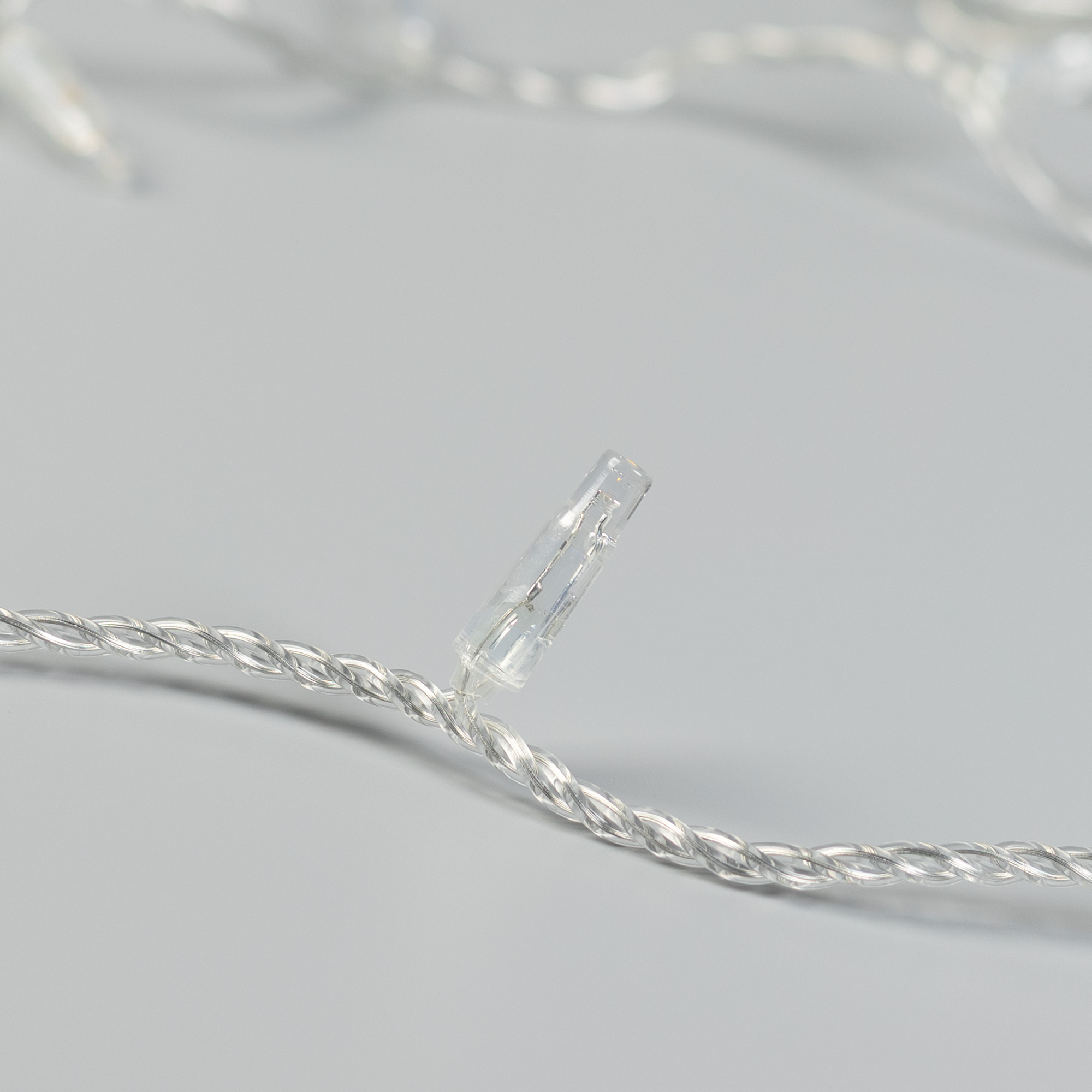 Универсальная светодиодная гирлянда "НИТЬ" серии Classic, предназначенная для декорирования и создания праздничного настроения как внутри помещений, так и снаружи (степень пылевлагозащиты IP65 позволяет размещать гирлянду на улице под навесом). Имея длину 10000 мм, она может использоваться для оформления средних и больших площадей. Универсальные соединительные разъемы позволяют наращивать длину до 50 м без использования дополнительных аксессуаров. Прозрачная вогнутая линза и эффект непрерывного свечения обеспечивают яркое, равномерное освещение, выделяя украшаемые объекты. Синий свет, в сочетании с холодным белым, помогает создать необходимую атмосферу для декоративного объекта. Провод прозрачный изготовлен из ПВХ. Аксессуар для подключения гирлянды к сети приобретается отдельно.