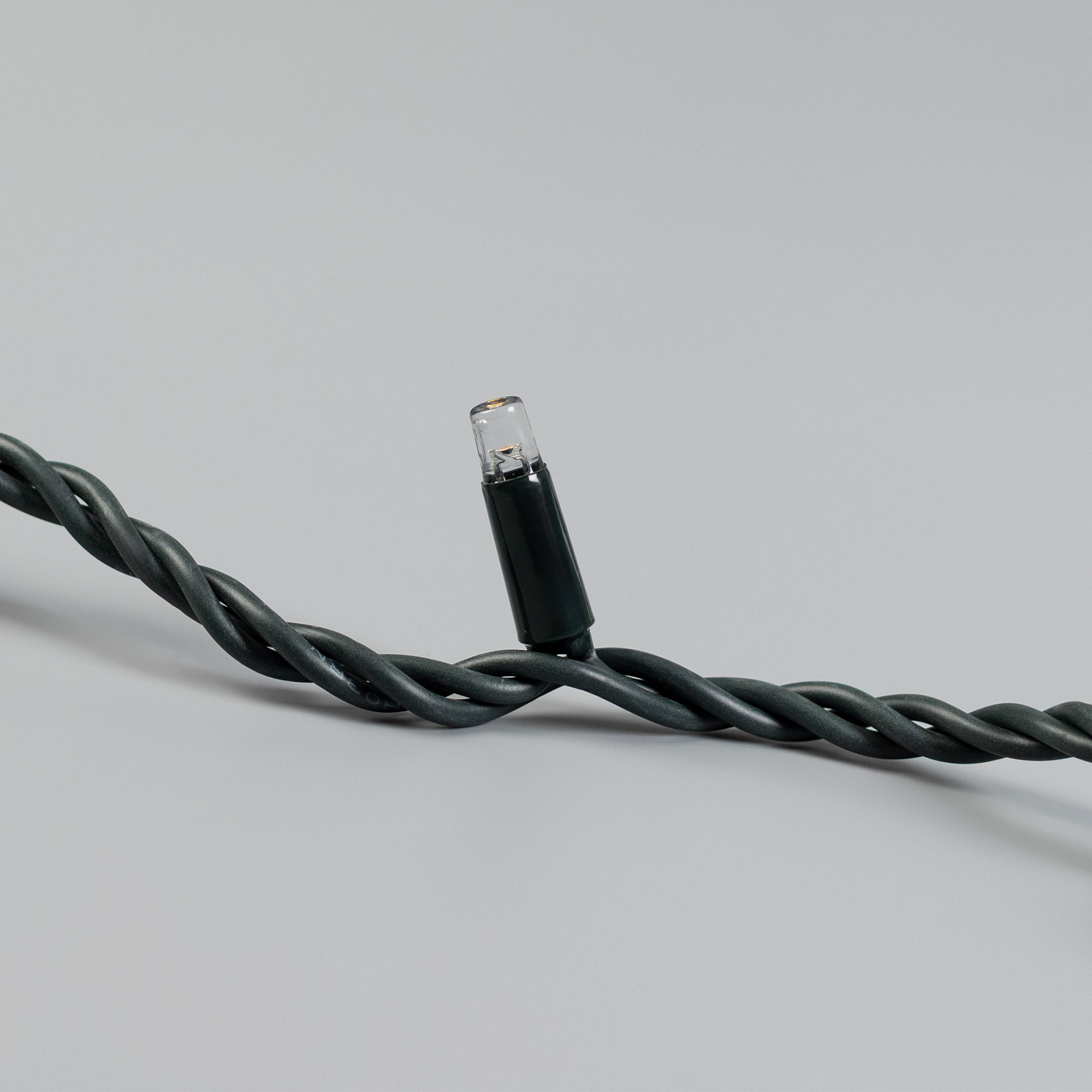 Светодиодная нить Classic. Размер 10000 мм. Цвет свечения БЕЛЫЙ (6000 К). 100 светодиодов размером 7 мм с эффектом медленного мерцания каждого светодиода с резким световым рисунком (прозрачная вогнутая линза). Провод темно-зеленый, каучук. Питание 230 В, Мощность 7 Вт, защита IP65, применение в помещении и на улице под навесом. Аксессуары для подключения и управления приобретаются отдельно.