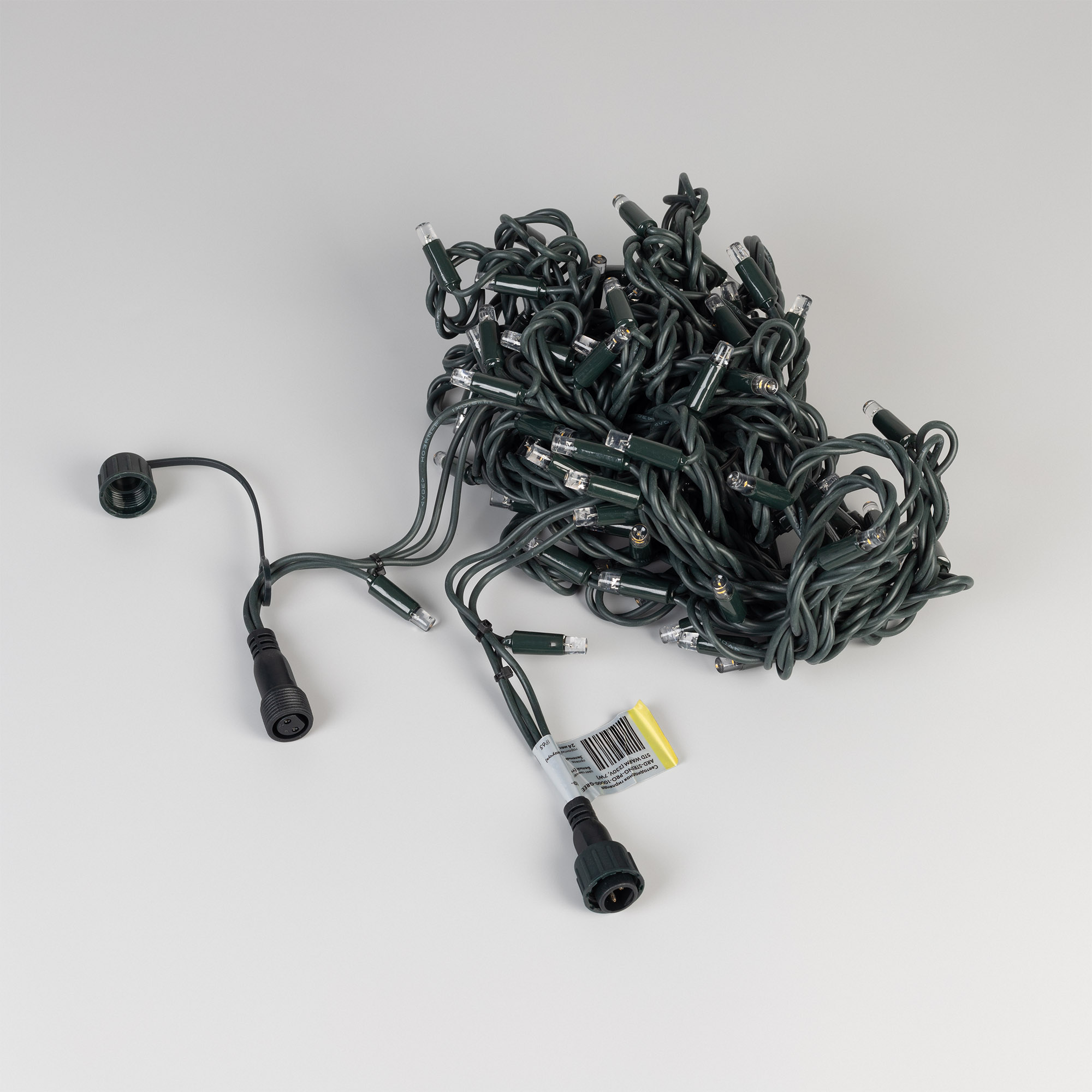 Универсальная светодиодная гирлянда "НИТЬ" серии Pro, предназначенная для декорирования и создания праздничного настроения как внутри помещений, так и снаружи (степень пылевлагозащиты IP65 позволяет размещать гирлянду на улице под навесом). Имея длину 10000 мм, она может использоваться для оформления средних и больших площадей. Универсальные соединительные разъемы позволяют наращивать длину до 50 м без использования дополнительных аксессуаров. Прозрачная вогнутая линза и эффект медленного мерцания каждого светодиода обеспечивают яркое, динамичное освещение, выделяя украшаемые объекты. Холодный белый свет помогает создать необходимую атмосферу для декоративного объекта. Провод изготовлен из каучука и окрашен в темно-зеленый цвет. Аксессуары для подключения и управления приобретаются отдельно.