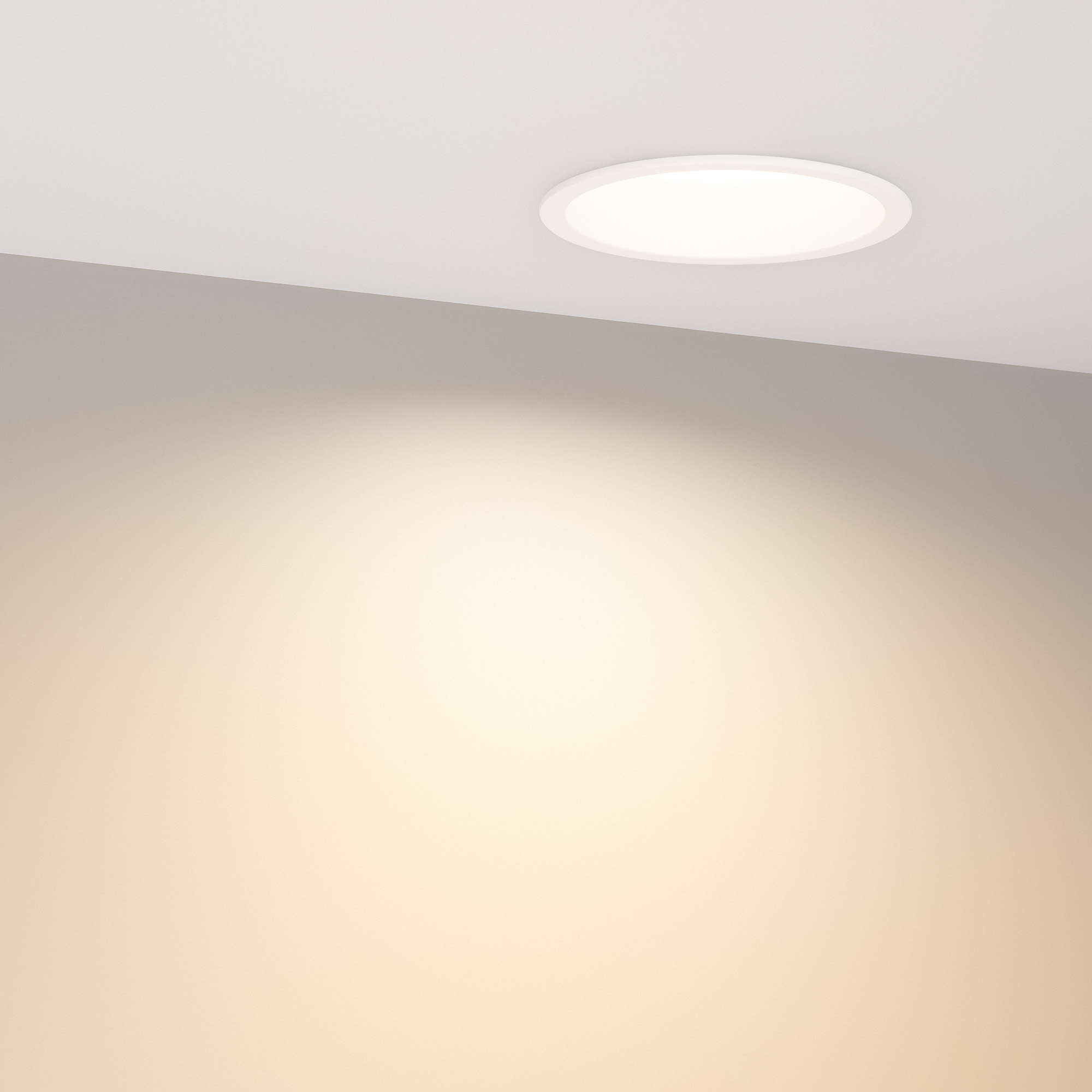 Встраиваемый круглый светильник с индексом цветопередачи CRI>90 и низкой пульсацией обеспечивает равномерное освещение без мерцания и видимости точек светодиодов с точной передачей цветовых оттенков. Алюминиевый корпус белого цвета с утопленным светодиодным модулем является интересным дизайнерским решением, создавая эффект света из ниоткуда и делая освещение комфортным для глаз. Особая конфигурация корпуса позволяет эффективно отводить тепло и продлевает срок службы светодиодов. Светильник с широким углом излучения 90 градусов и световой эффективностью 70 лм/Вт подходит для качественного основного освещения. Легко устанавливается с помощью пружин в монтажное отверстие. Драйвер поставляется в комплекте и позволяет быстро подключать светильник напрямую к сети переменного тока 230 В. Диммирование возможно при замене штатного драйвера. Степень защиты от пыли IP20 позволяет применять модель в жилых, коммерческих, торговых и других помещениях, где отсутствует контакт с водой.