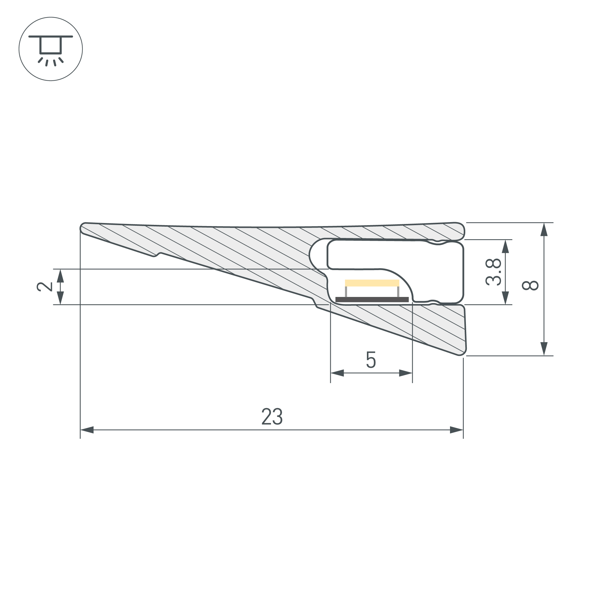 Алюминиевый анодированный профиль для светодиодных лент и линеек. Цвет - серо-оливковый. Габаритные размеры (L×W×H): 2000x23x8 мм. Ширина площадки для ленты 5 мм. Экраны и заглушки приобретаются отдельно. Цена за 1 метр.