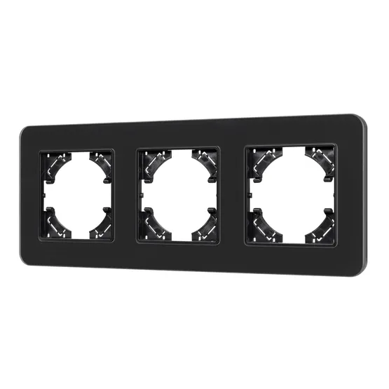 Рамка стеклянная на 3 поста, под встраиваемый механизм. Цвет - черный с Soft-Touch покрытием. Среднего уровня герметичности IP20. Ориентация монтажа - горизонтальная (основным ориентиром служат посадочные выступы для накладки механизма). Габаритные размеры: длина 228 мм, ширина 86 мм, высота 7 мм. Гарантийный срок 12 мес.
