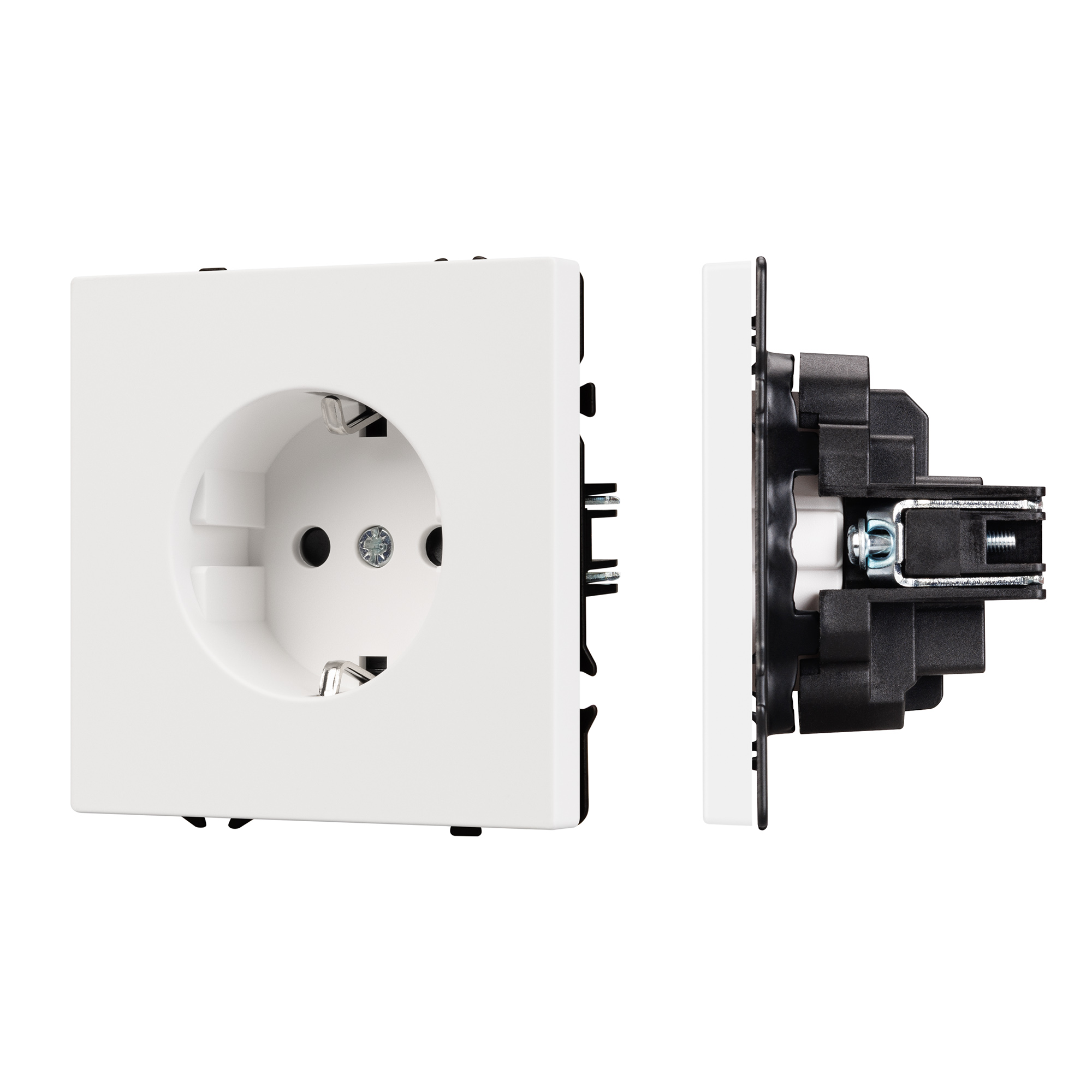 Механизм розетки с заземлением на 1 пост. Цвет - белый, с Soft-Touch покрытием. Без фронтальной рамки. Уровень пылевлагозащиты IP20. Розетка устанавливается в стандартный подрозетник круглого сечения диаметром 60мм. Габаритные размеры: длина 71 мм, ширина 71 мм, высота 44 мм. Гарантийный срок 10 лет.
