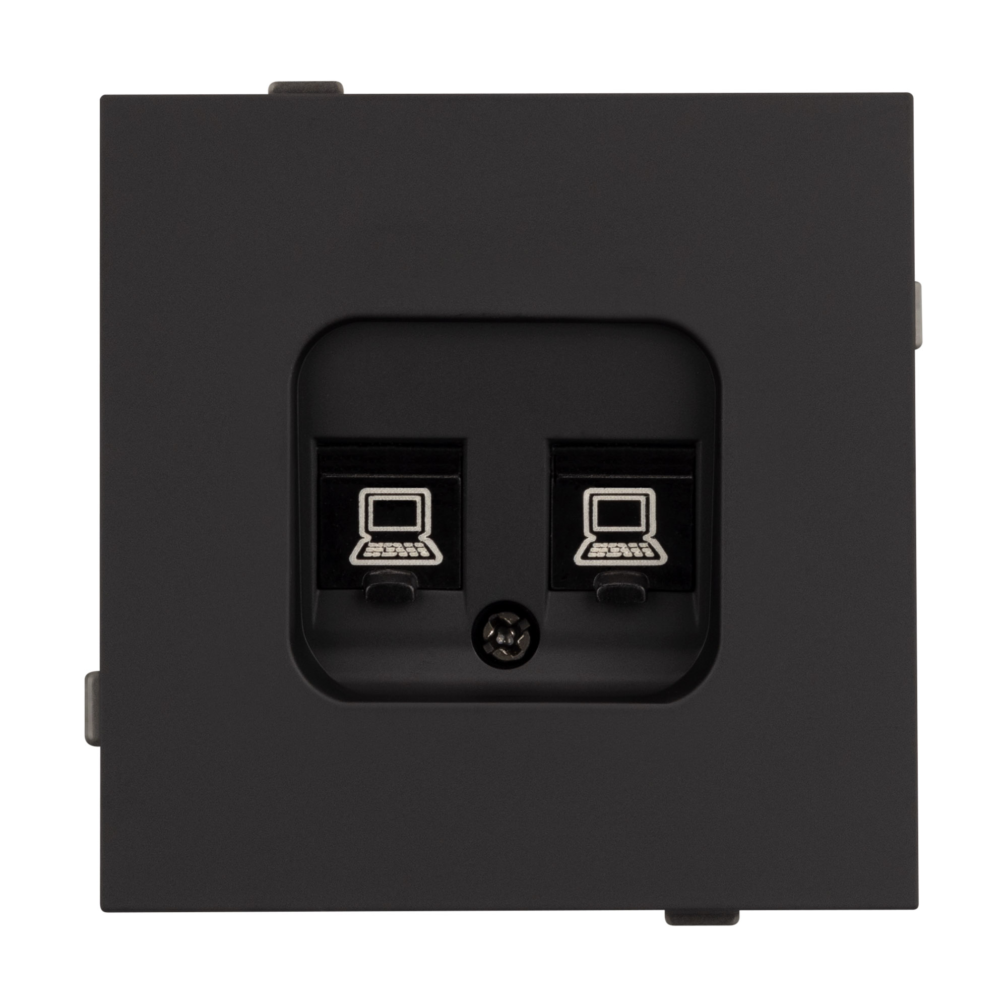Механизм компьютерной розетки на 2 поста 6-й категории. Цвет - черный, с Soft-Touch покрытием. Без фронтальной рамки. Уровень пылевлагозащиты IP20. Розетка устанавливается в стандартный подрозетник круглого сечения диаметром 60мм. Габаритные размеры: длина 71 мм, ширина 71 мм, высота 42 мм. Гарантийный срок 10 лет.