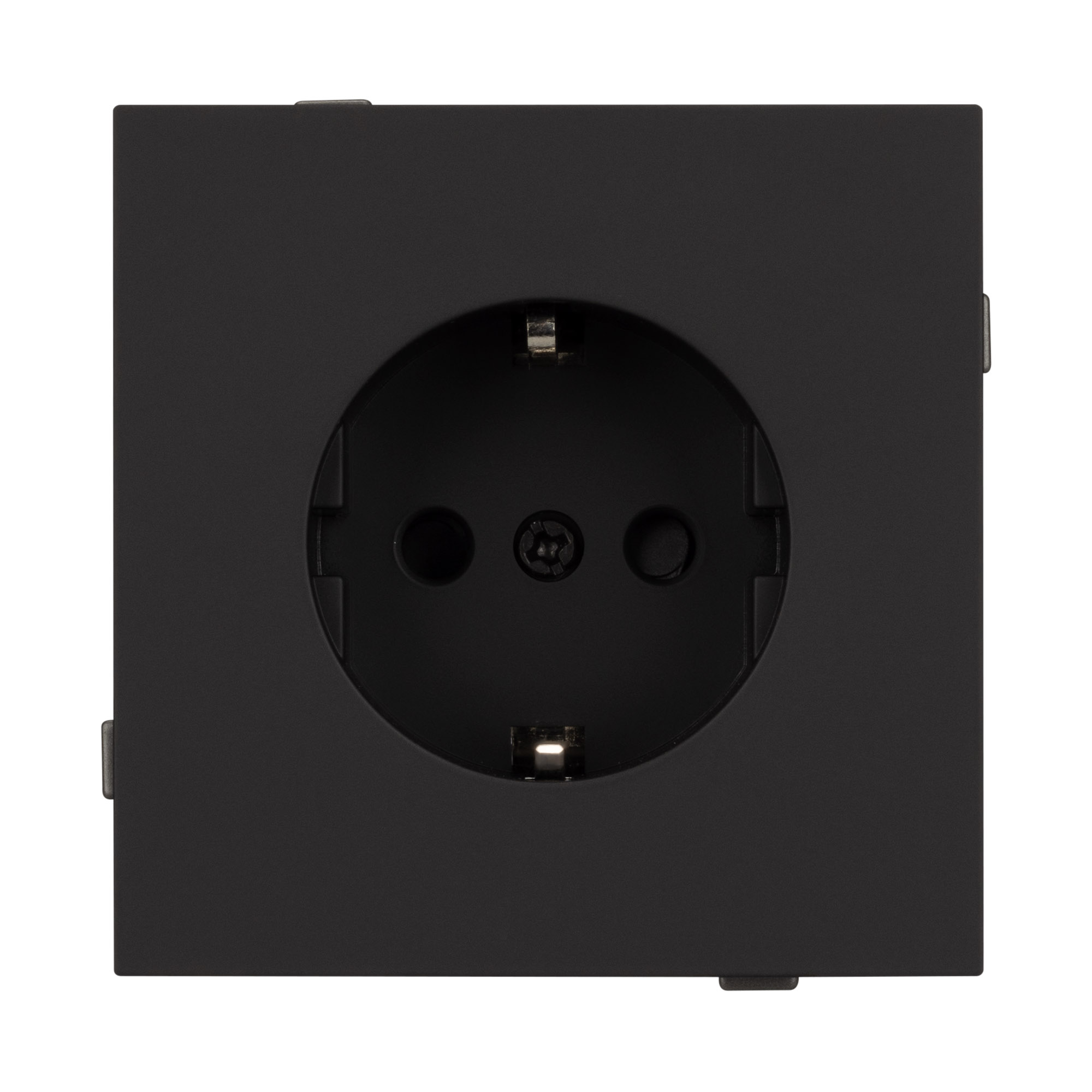 Механизм розетки с заземлением на 1 пост. Цвет - черный, с Soft-Touch покрытием. Без фронтальной рамки. Уровень пылевлагозащиты IP20. Розетка устанавливается в стандартный подрозетник круглого сечения диаметром 60мм. Габаритные размеры: длина 71 мм, ширина 71 мм, высота 44 мм. Гарантийный срок 10 лет.