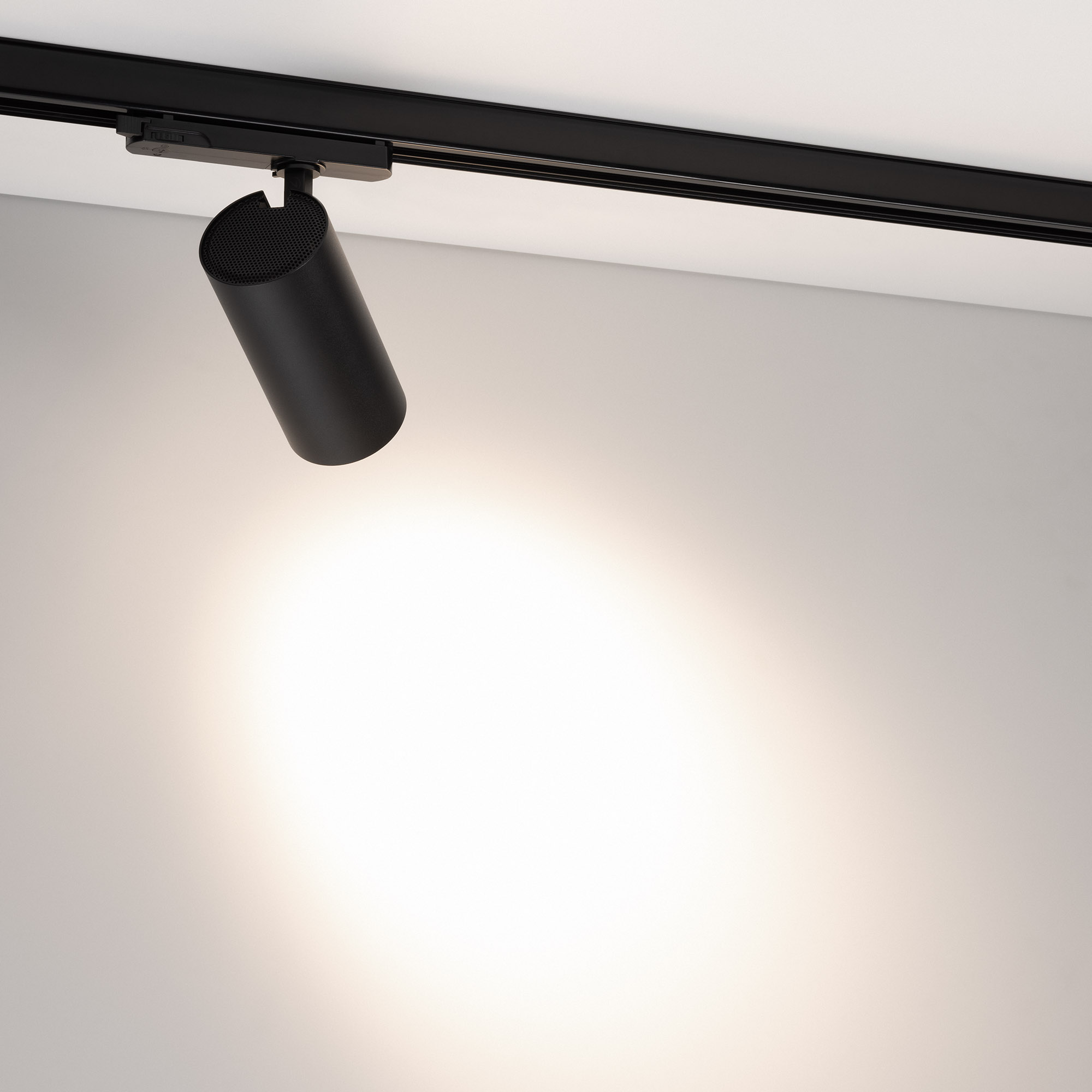 Светильник для треков/шин 4 провода. Мощность 20 Вт, св. поток без решетки honeycomb 2000 лм, 100 лм/Вт, с решеткой honeycomb 1320 лм, 66 лм/Вт, дневной 4000 K, CRI>90, угол 36°, напряжение питания 230 В. Черный круглый корпус из алюминия, материал линзы PMMA, степень защиты IP20. Размер: диаметр 74 мм, длина световой части 154 мм. Монтаж на трек 3-фазный. Драйвер встроенный 24-42 В, 500мА., пульсация <5%