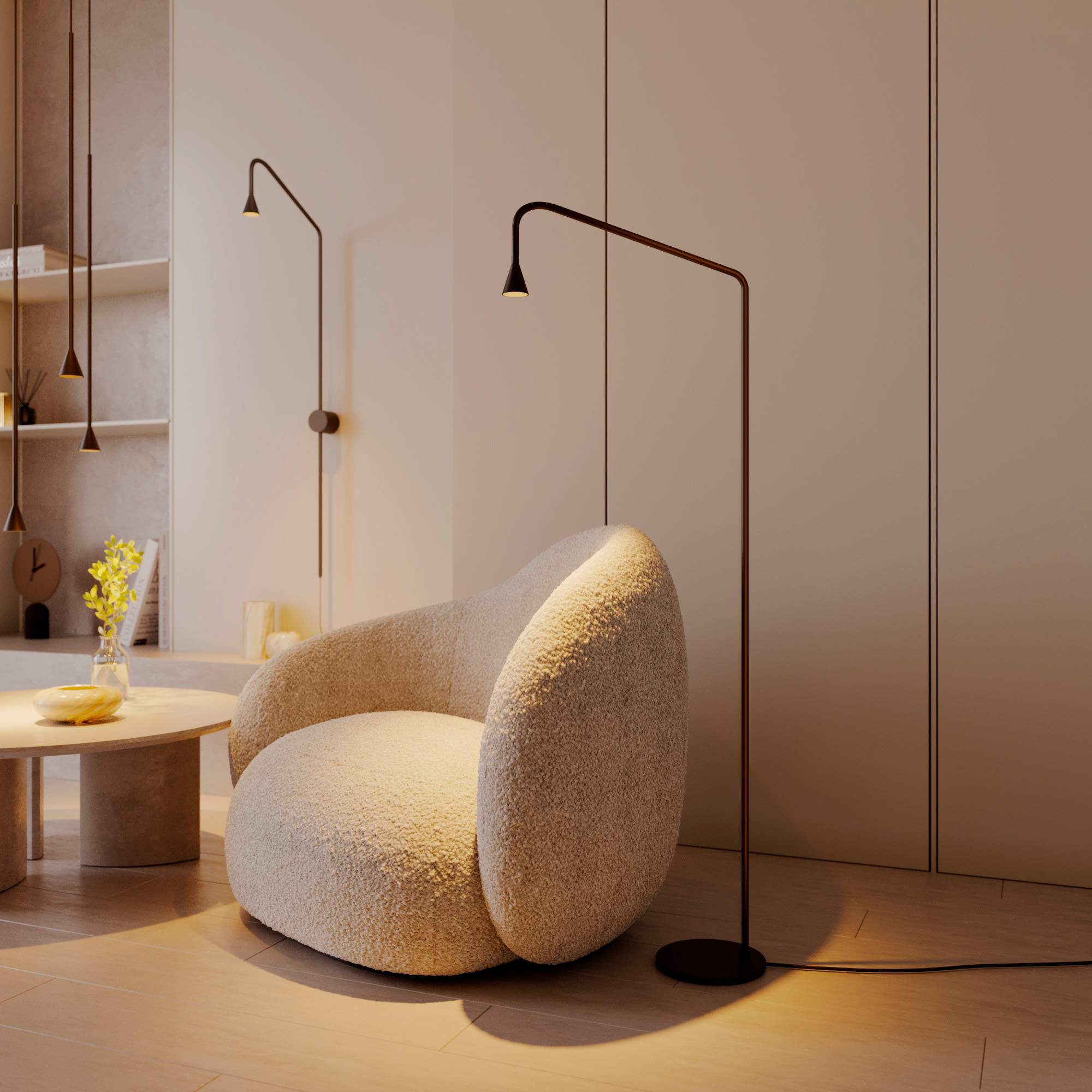 Декоративный напольный светильник RINAR-FLOOR мощностью 5 Вт с углом излучения 36 градусов используется в качестве стильного элемента интерьера, а также для местного освещения в интерьере жилых или коммерческих помещений. Высокий индекс цветопередачи CRI>94 и световой поток 420 лм обеспечивают качественное направленное освещение. Поворотный светоизлучатель в форме конуса позволяет легко менять направление луча. Низкий уровень пульсации создает равномерное свечение без мерцаний. Степень защиты корпуса на уровне IP20 позволяет применять светильник внутри помещений, где отсутствует контакт с водой. За счет сетевого адаптера, входящего в комплект, светильник быстро подключается к сети 230В.