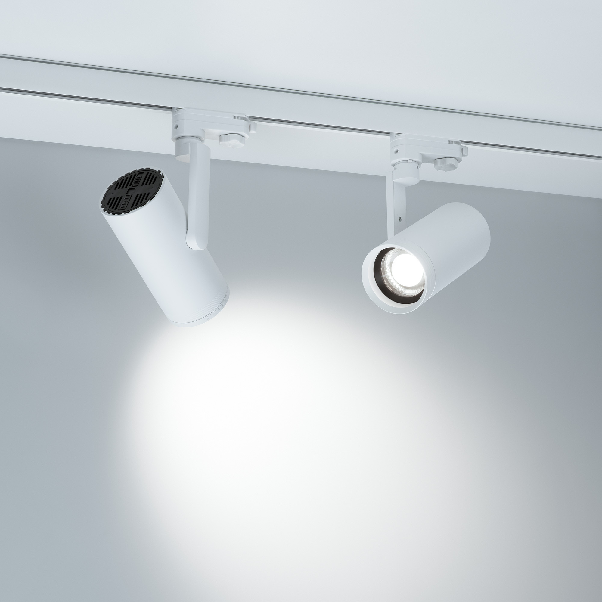 Трековый светильник URANUS с изменяемой мощностью 18/25Вт (при помощи переключателя на корпусе) предназначен для акцентного освещения общественных, коммерческих и торговых помещений. Возможность переключения цветовой температуры на корпусе светильника в диапазоне 2700K/3000K/3500K/4000K/5700K, а также регулируемый угол излучения 20-50° позволит эффективно подсветить различные зоны в помещении, используя только один вид светильника. Боковое крепление светового модуля увеличивает угол наклона и поворота корпуса светильника, позволяя мгновенно менять световые акценты.