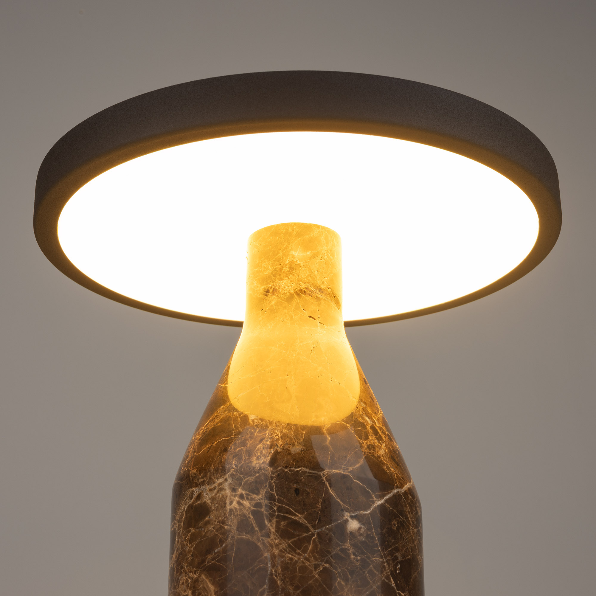 Настольный светильник CROOD. С изменяемой цветовой температурой 2700/3200/4000K, переключается коротким нажатием на сенсорную кнопку на плафоне, диммирование происходит за счет ее удержания. Мощность 7 Вт, св. поток 159 лм, 23 лм/Вт, CRI>94, угол 140°, напряжение питания 230 В. Черный плафон из алюминия, основание из мрамора, степень защиты IP20. Общая высота 240 мм. Габариты светового модуля DхH: 225 x 22 мм. Габариты основания DхH:: 100 x 220 мм. Пульсация <1%.
