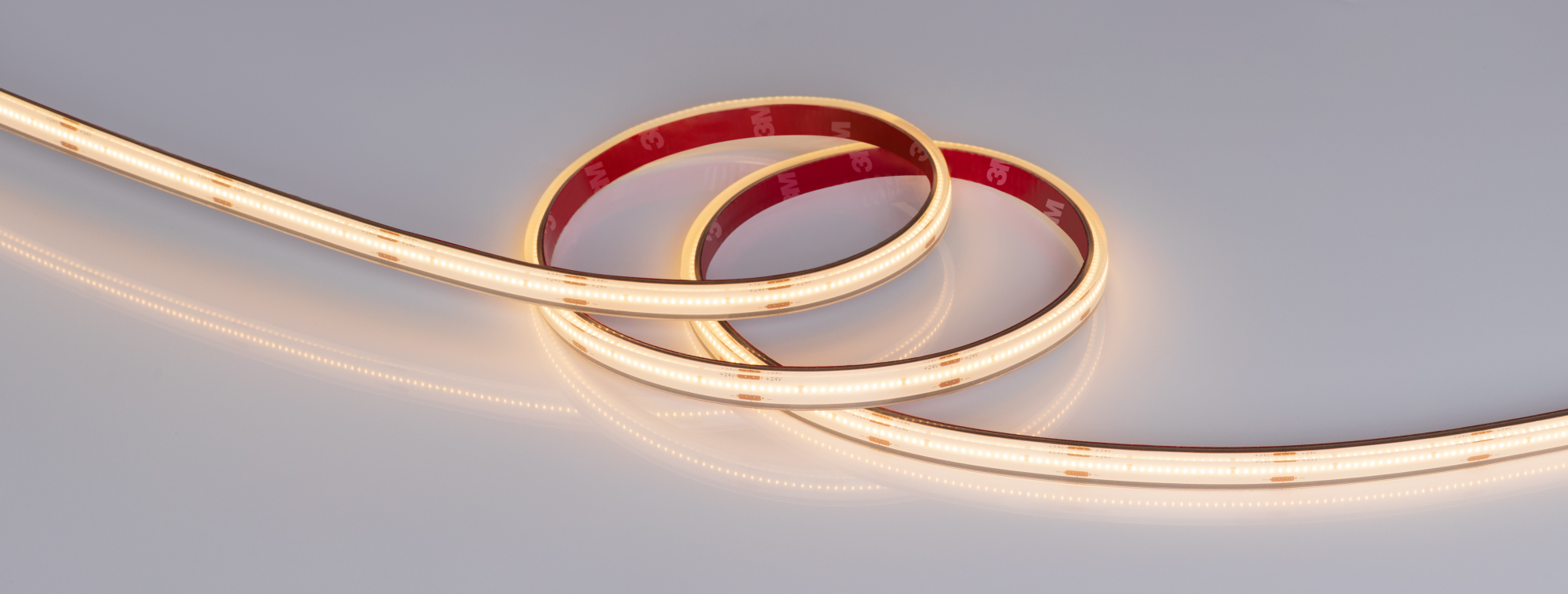 Благодаря светодиодам CSP лента образует равномерное свечение без видимых точек светодиодов.