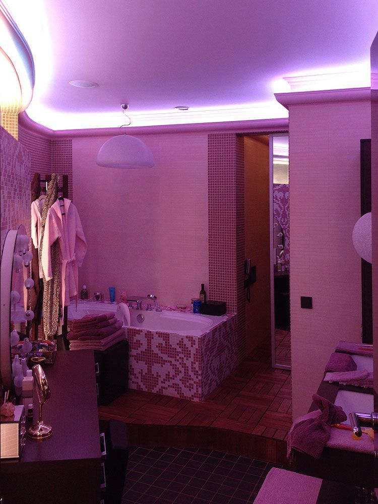 Задачей данного проекта являлась замена старой неоновой подсветки на современную светодиодную и многоцветную. Замена была произведена в спальной и ванной комнатах.