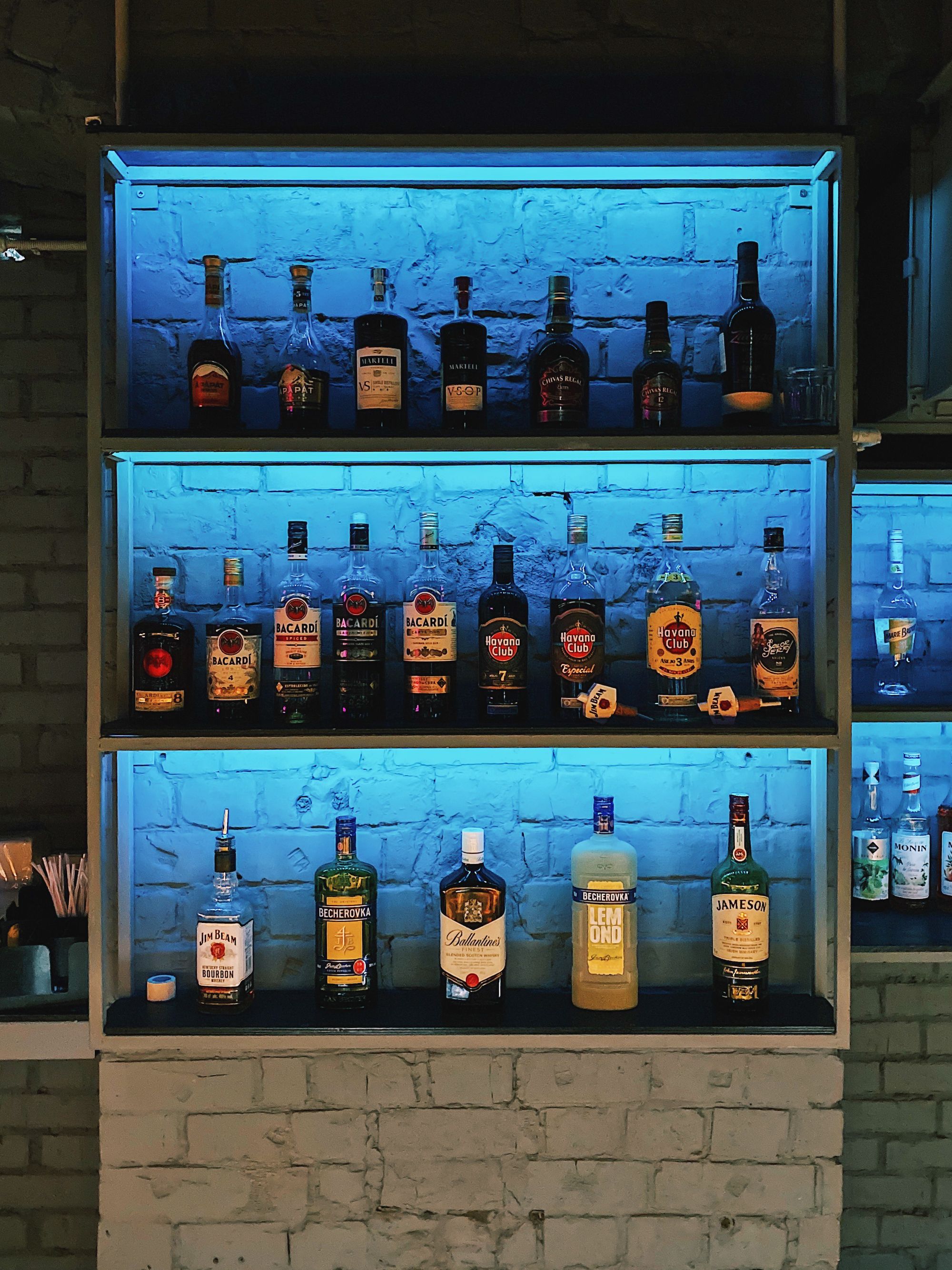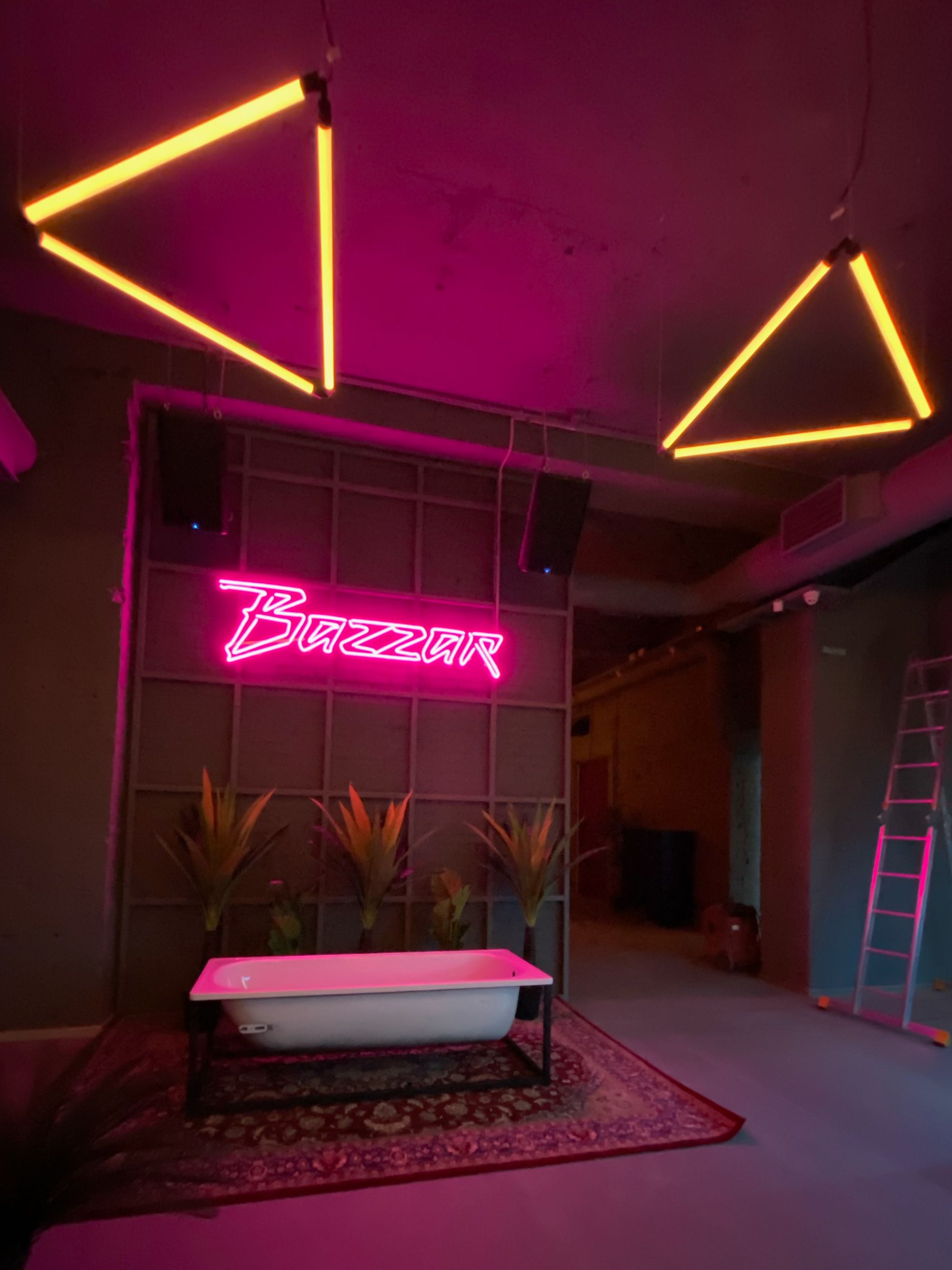 С помощью световых инсталляций в клубе воссоздана невероятная атмосфера ночного города. Фактурность кирпичных стен подчеркнута световыми линиями разных цветов. Помещения, оформленные в стиле стрит-арт, напоминают тусовочные улицы европейских городов. В рамках проекта создано динамическое освещение с возможностью смены цвета свечения лент с помощью RGB-контроллера. Использование простых подвесных линейных светильников добавляет пространству четкой геометрии.