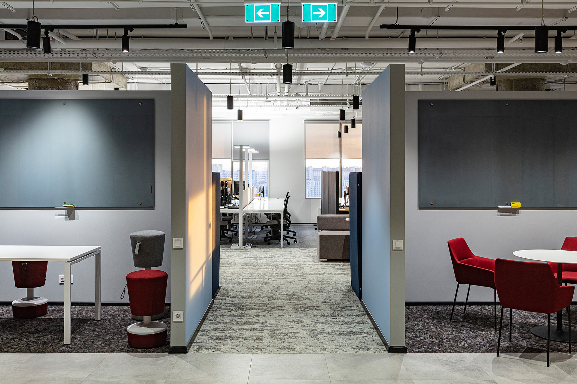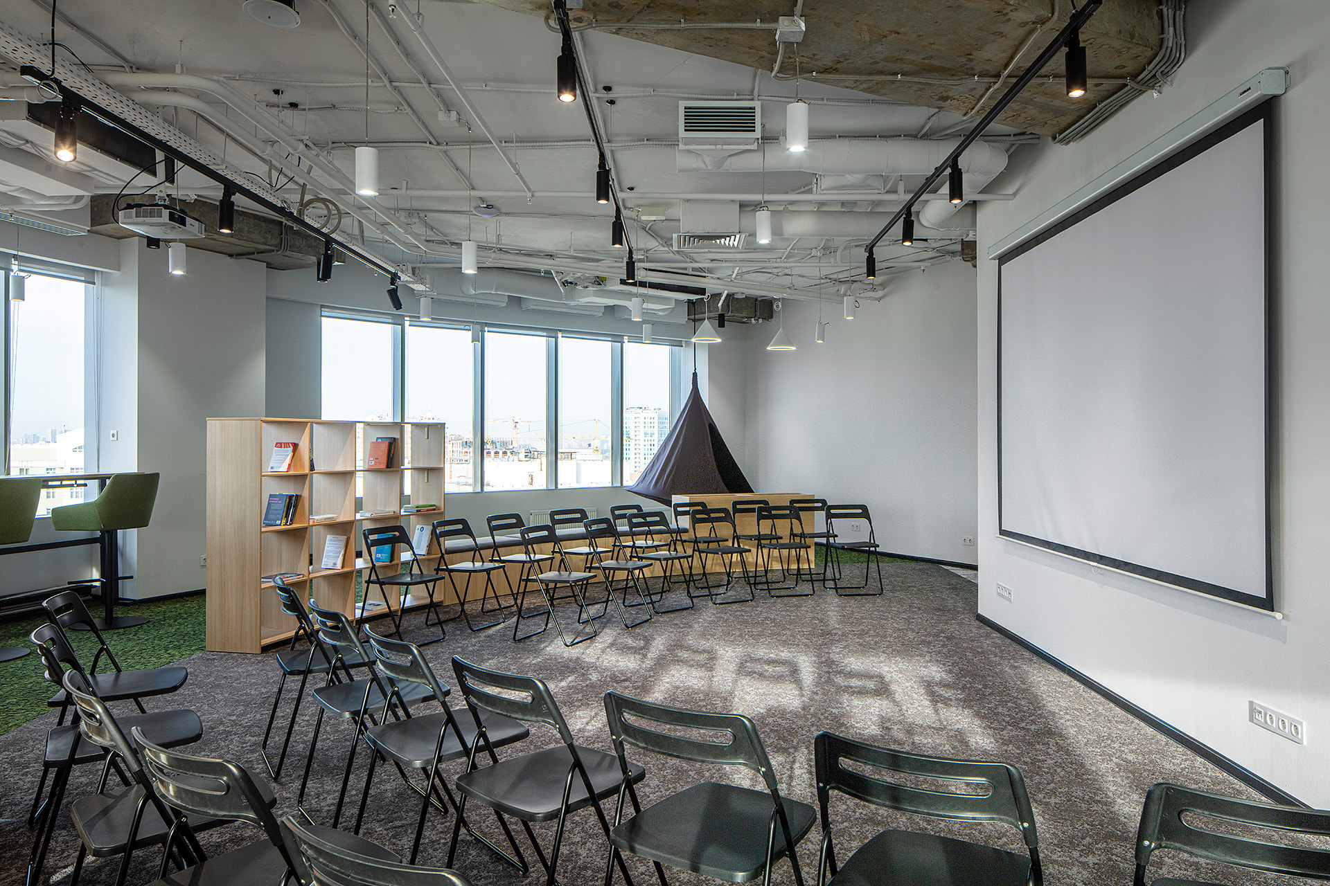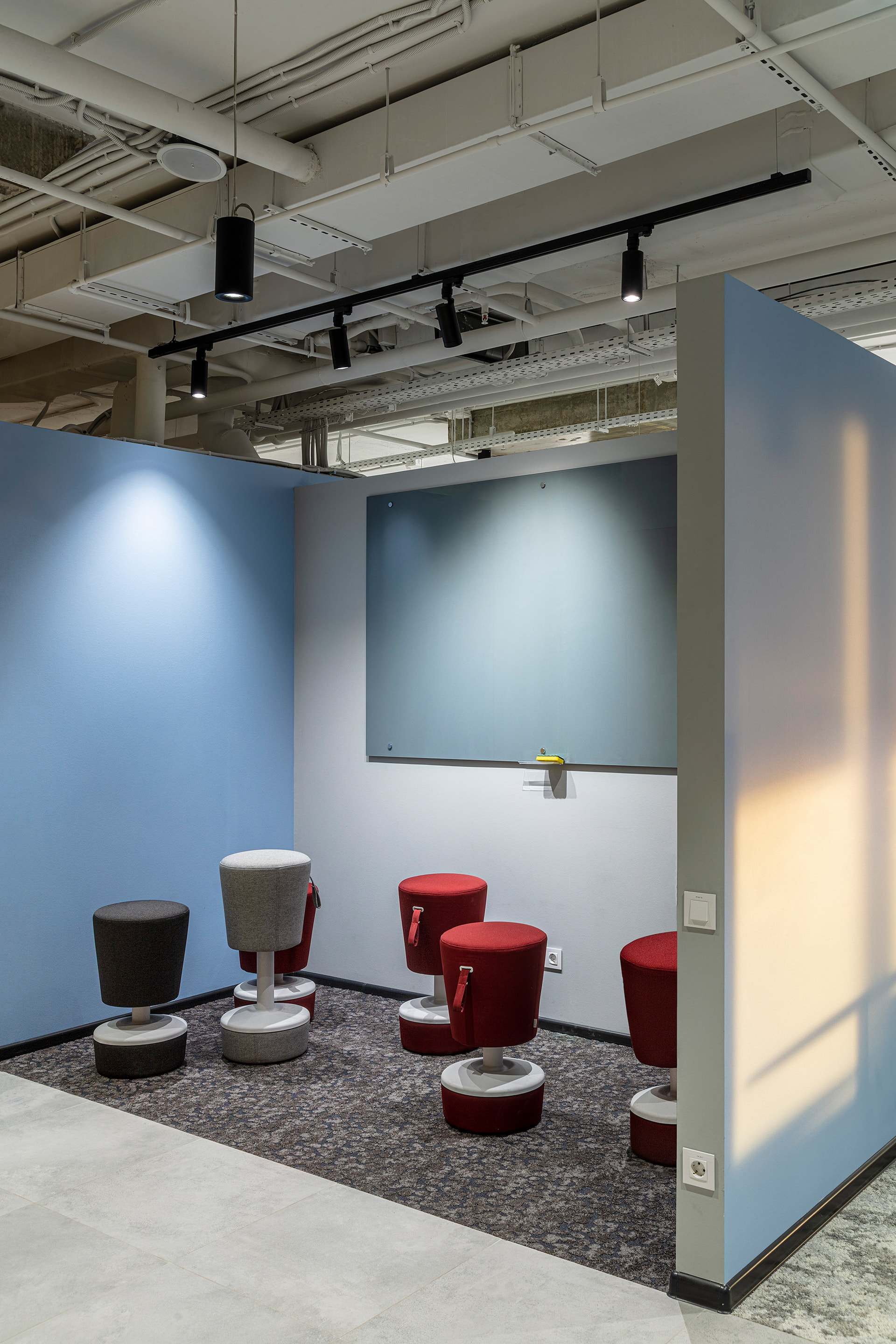 Основой концепции проекта стало стремление приблизиться к природе через форму и цвет. Сдержанные натуральные оттенки в оформлении, интерьер в стиле хай-тек без лишних деталей: максимум простоты, пространства и естественного света. В качестве искусственных источников света были выбраны стильные и лаконичные трековые светильники серии ZEUS с высоким индексом цветопередачи CRI>90. Светильники простой формы черного цвета идеально смотрятся в любой зоне офиса и обеспечивают качественное акцентное освещение. Свободное перемещение светильников вдоль трека позволяет создать комфортную световую среду в любой части коворкинга.