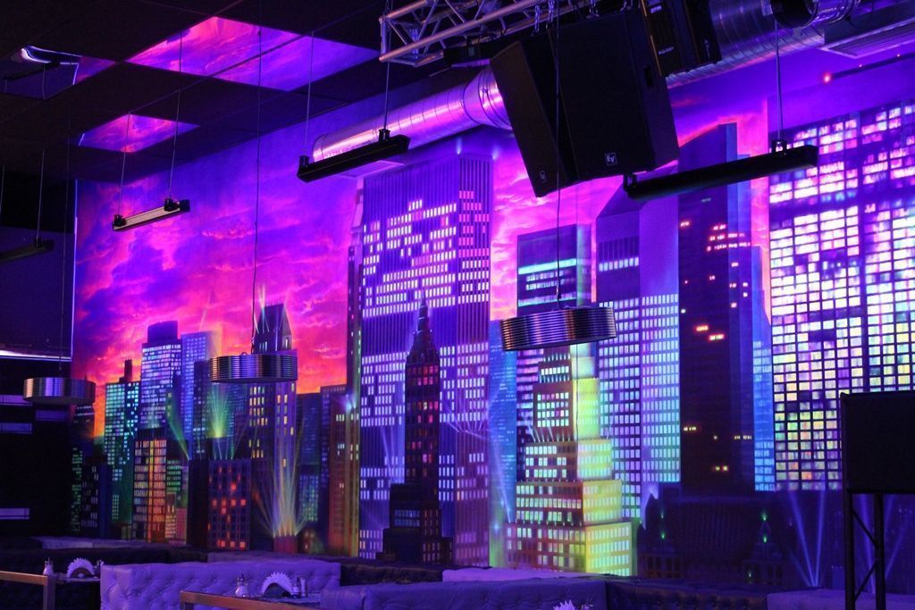 Для оформления ночного клуба применялось различное светодиодное оборудование торговой марки