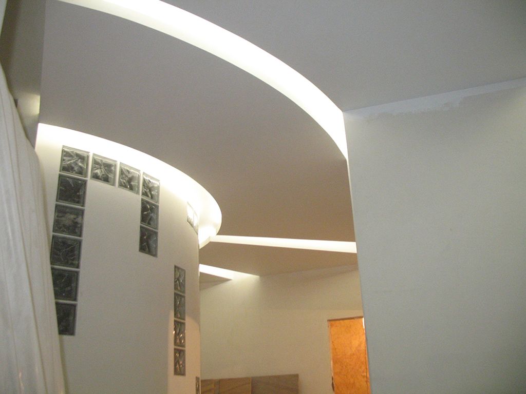 В данном проекте была реализована светодиодная подсветка потолков и карнизов из гипсокартона.