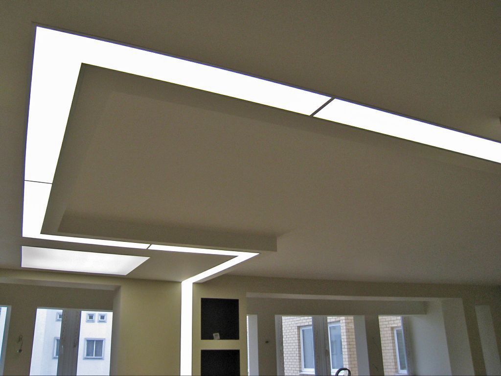 Достаточно низкие потолки не позволили применять привычные люстры, поэтому выбор пал на встроенные светильники, контурную подсветку потолков из гипсокартона и витражные световые потолки.