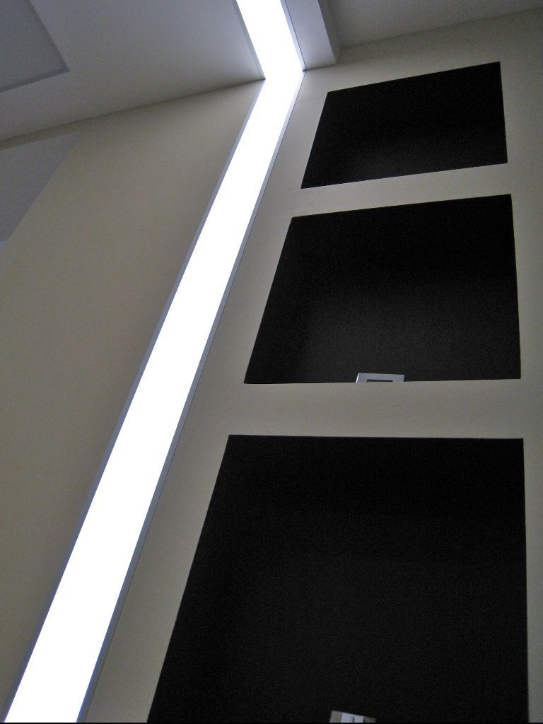 Основной изюминкой стала идея "Путеводной нити" по всем нежилым помещениям, она была реализована путём изготовления встроенного в гипсокартон линейного светодиодного светильника, а использование диммера позволило расширить функционал данного освещения. В дневное время светодиодный светильник давал достаточно света, а в темное время суток превращался в ночник с мягким не слепящим светом.